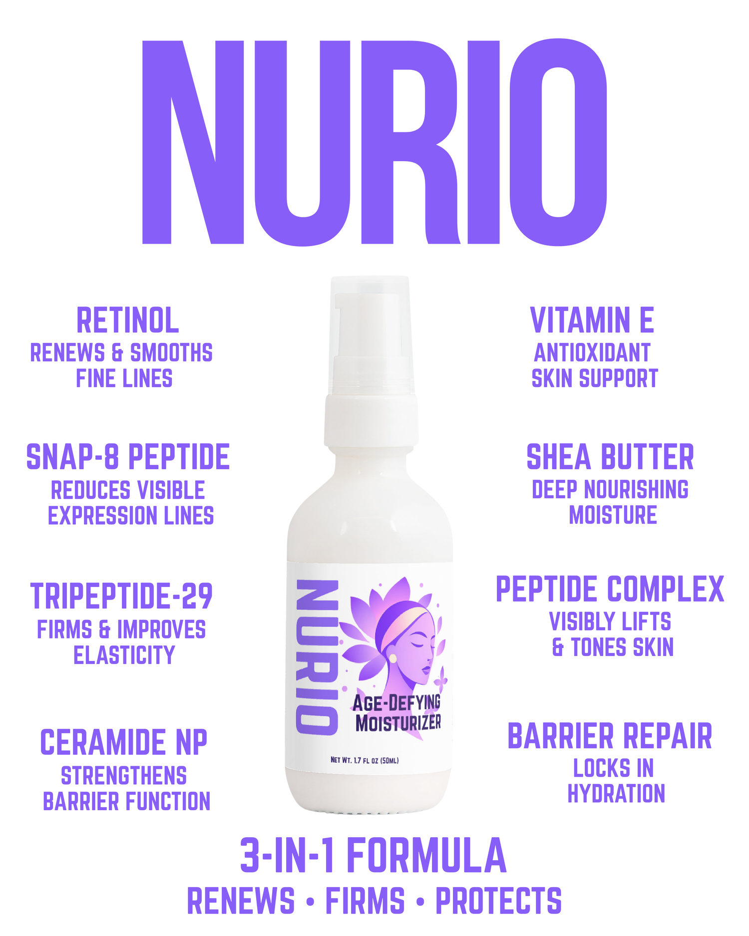 Fine lines need retinol renewal. Loss of firmness needs peptide support. Dry, compromised skin needs ceramide barrier repair. This moisturizer delivers all three in one targeted formula—so you stop choosing between hydration and anti-aging, and start seeing smoother, firmer, more radiant skin.