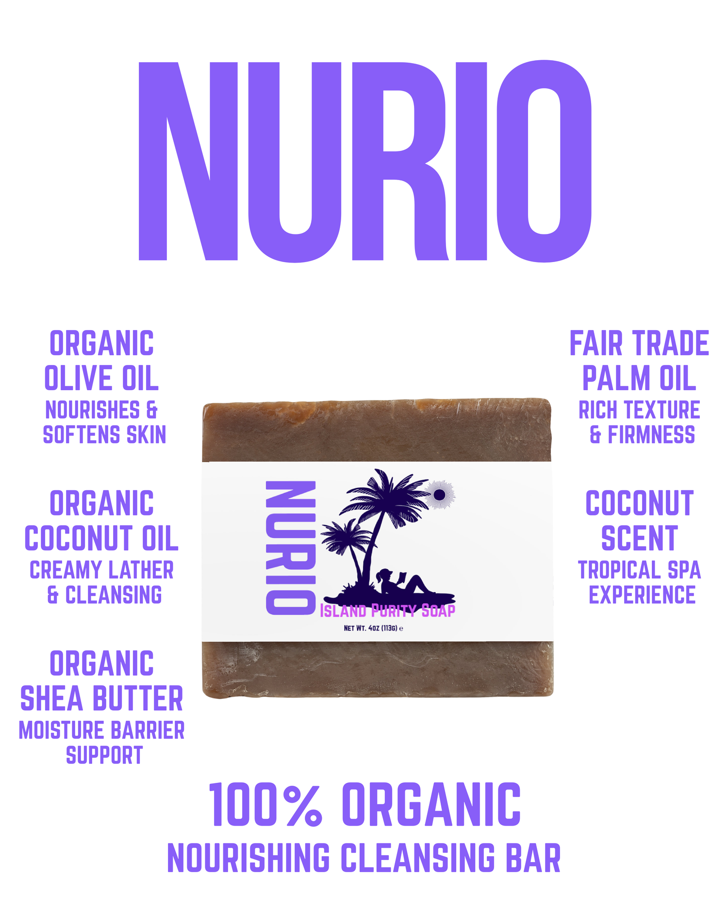 Organic plant oils and shea butter cleanse gently while nourishing your skin. No harsh detergents. No synthetic chemicals. No ingredients that strip your barrier. Just soft, hydrated, comfortable skin with a tropical coconut scent that makes cleansing feel like self-care.