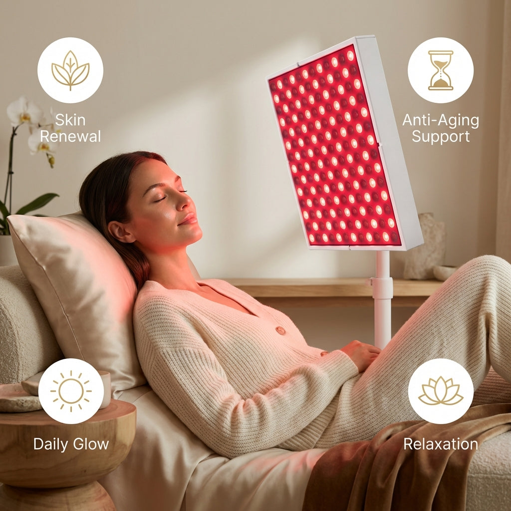 Using targeted red light wavelengths, this panel delivers an even, comfortable experience that fits naturally into daily routines. Whether used for skincare, recovery, or moments of calm, it provides a simple way to incorporate light therapy at home—without appointments or complicated setups.